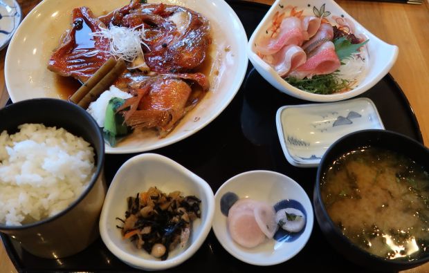 次に【和食だワン】という和食店へ行きました。午前11時40分頃に到着しました。ここは店内もペットOKです。金目鯛定食を注文しました。とてもおいしかったです。どこの店もそうですが、金目鯛定食はすぐに売り切れになるようです。今回も僕たち3人分でちょうど最後でした。